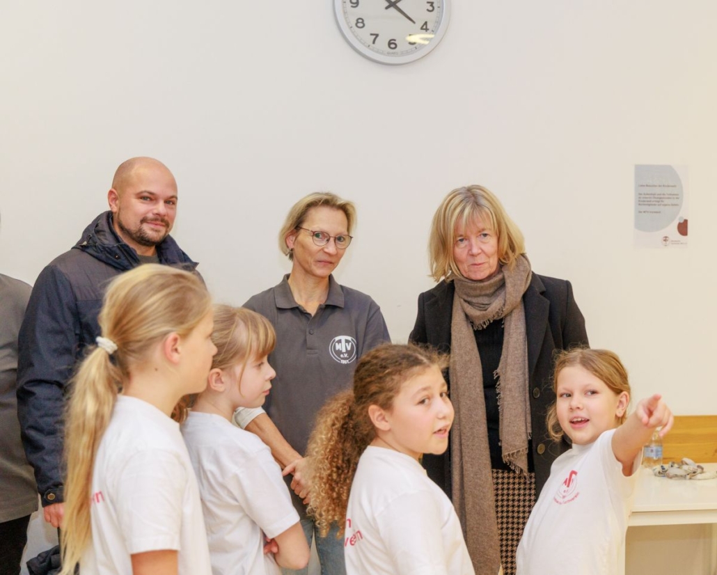 Im Anschluss begrüßte Christine Bechtloff, eine der Vorsitzende des MTV, die Anwesenden herzlich. Es folgte eine ausführliche Erläuterung der baulichen Maßnahme: Der geplante Treppenlift ermöglicht künftig nicht nur Kindern mit Gehbehinderung die Teilnahme an der beliebten „Kinderwelt“, sondern verbessert auch für Erwachsene und ältere Mitglieder den Zugang zum Fitnessstudio. So bleibt das Ziel, fit und mobil zu bleiben, für alle Vereinsmitglieder erreichbar.