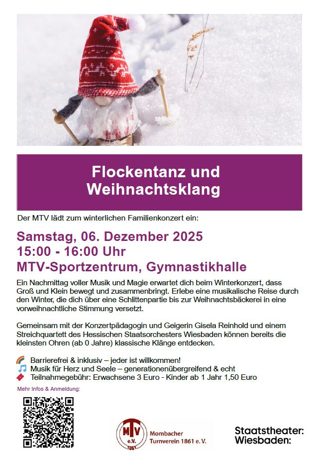 Begib dich mit uns auf eine musikalische Reise durch den Winter: Von einer fröhlichen Schlittenpartie bis hin zur berühmten Weihnachtsbäckerei stimmt dich das Streichquartett des Hessischen Staatsorchesters Wiesbaden gemeinsam mit der Konzertpädagogin und Geigerin Frau Gisela Reinhold auf eine wunderbare, vorweihnachtliche Zeit ein. Schon die kleinsten Ohren können hier klassische Klänge entdecken und erleben, wie Musik verbindet und berührt.