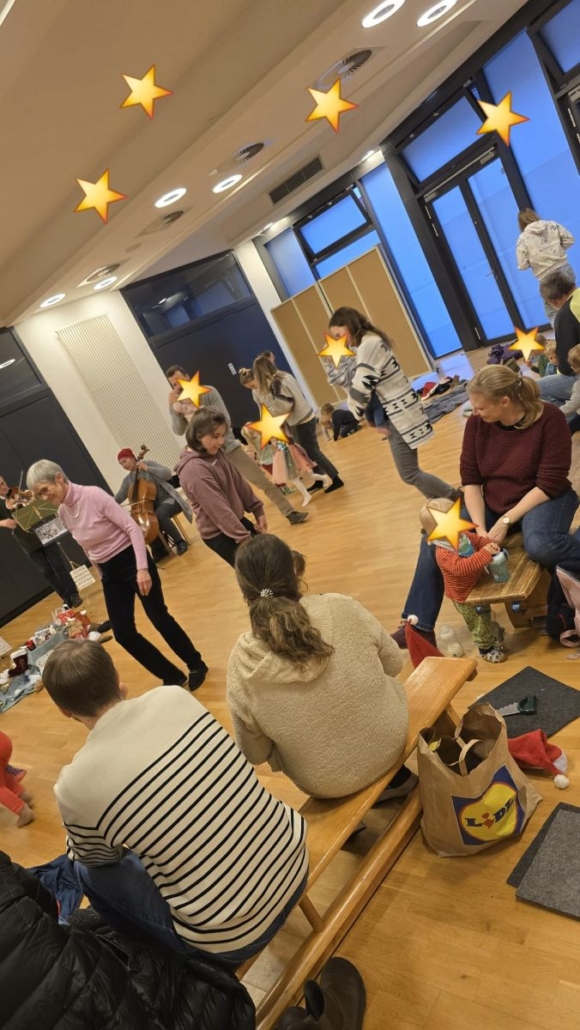 Ein besonderes Highlight war die musikalische Schlittenfahrt mit Leopold Mozarts „Schlittenfahrt“. Pferde mit klingenden Schellen zogen – musikalisch untermalt – den Schlitten, und die Kinder durften nicht nur zuhören, sondern auch selbst mitmachen und sich in die Szene hineinversetzen. Danach wurde gefeiert: Ein festlicher Tanzteil sorgte für ausgelassene Stimmung, bevor es musikalisch auf die Schlitten-Rückfahrt ging.