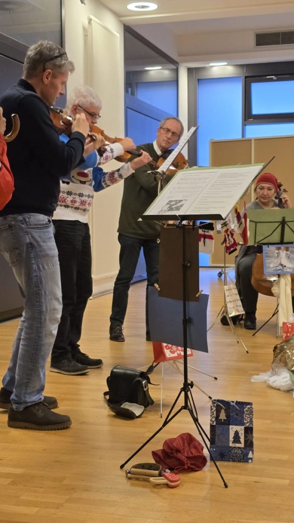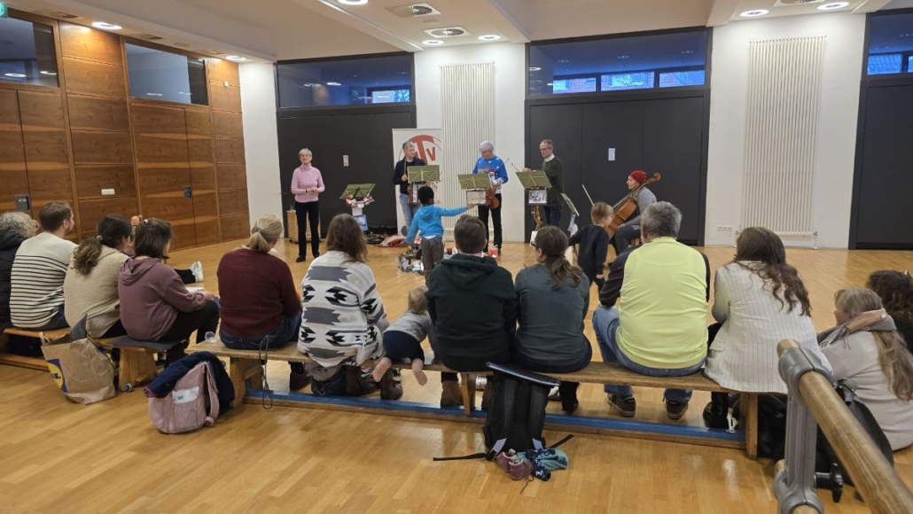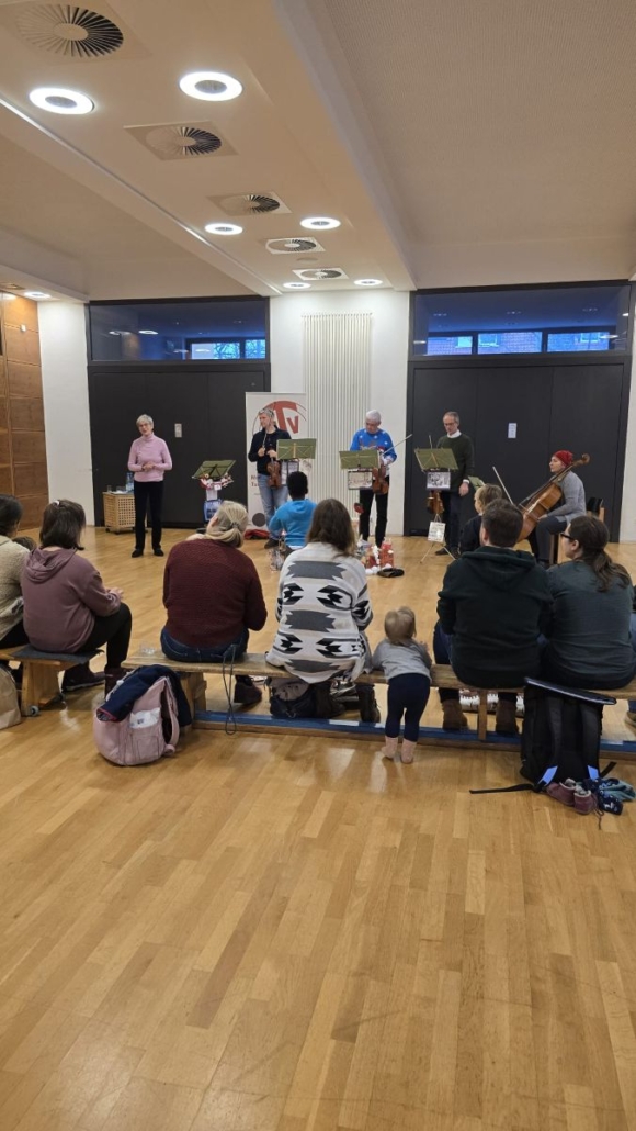 Am 06. Dezember 2025 verwandelte sich das Foyer des MTV-Sportzentrums in eine winterliche Klanglandschaft – und das trotz Regenwetters, das Schirm und Regenjacke zum unverzichtbaren Begleiter machte. Die Reihe „Brüderchen, komm tanz mit mir“ lud diesmal zu einem ganz besonderen Konzert mit dem Streichquartett des Hessischen Staatsorchesters Wiesbaden ein: Anton Tykhyy (Violine), Sebastian Max (Violine), Tilman Lauterbach (Viola) und Emanuela Simeonova (Violoncello) nahmen Groß und Klein und sehr Klein mit auf eine zauberhafte musikalische Reise.
