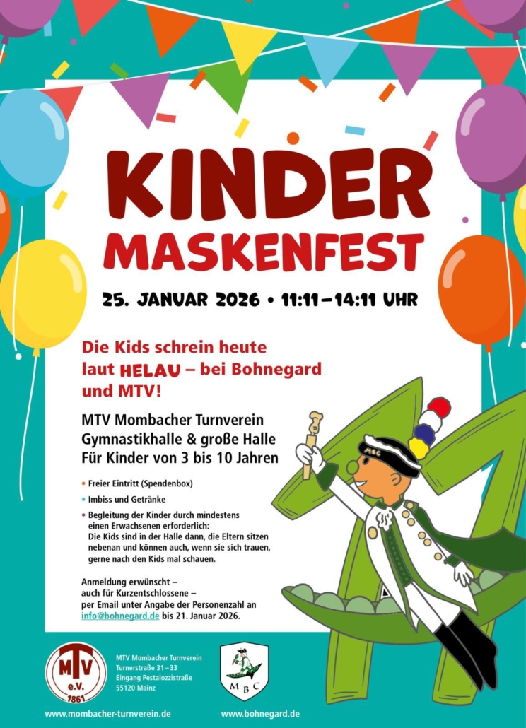 Zieh deine schönstes Kostüm an und feiere mit uns ein kunterbuntes Fest voller Überraschungen, Spiele und fröhlicher Musik. Komm vorbei und lass uns gemeinsam eine tolle Zeit erleben!