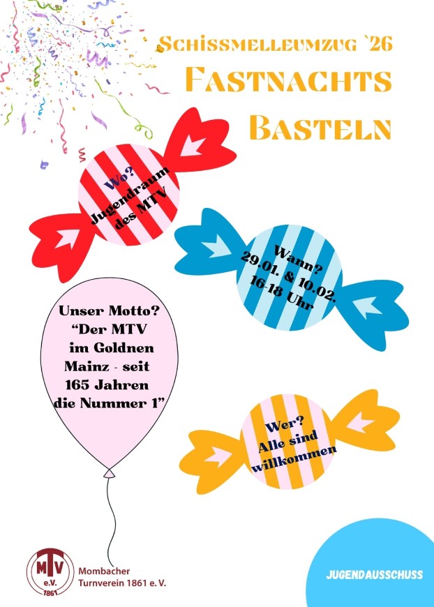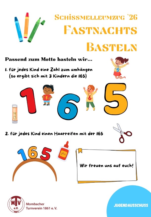 Helau Ihr Mombacher! Die närrische Zeit steht vor der Tür – und der Jugendausschuss lädt euch herzlich ein, gemeinsam mit euren Kindern kreative Fastnachtskostüme für den Schissmelleumzug (17.02.2026) zu basteln.