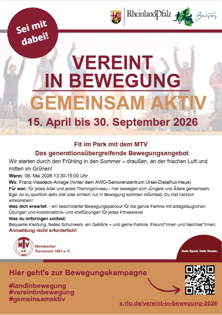Mit diesem Angebot starten wir in die Kampagne „Vereint in Bewegung – Gemeinsam aktiv“ von Rheinland-Pfalz. Bitte folgt gerne unseren aktuellen Berichten, wenn ihr gemeinsam mit uns diese Kampagne bis 30. September 2026 begleiten möchtet.