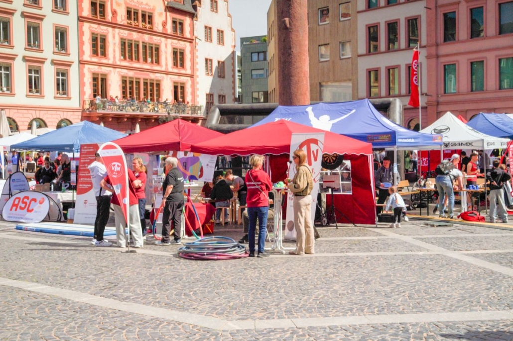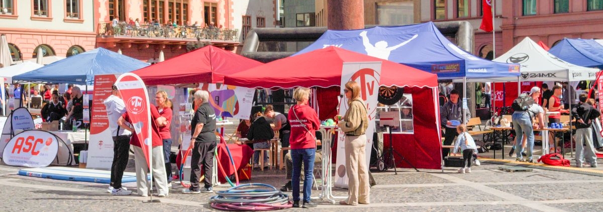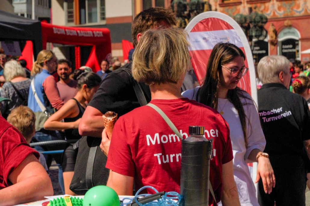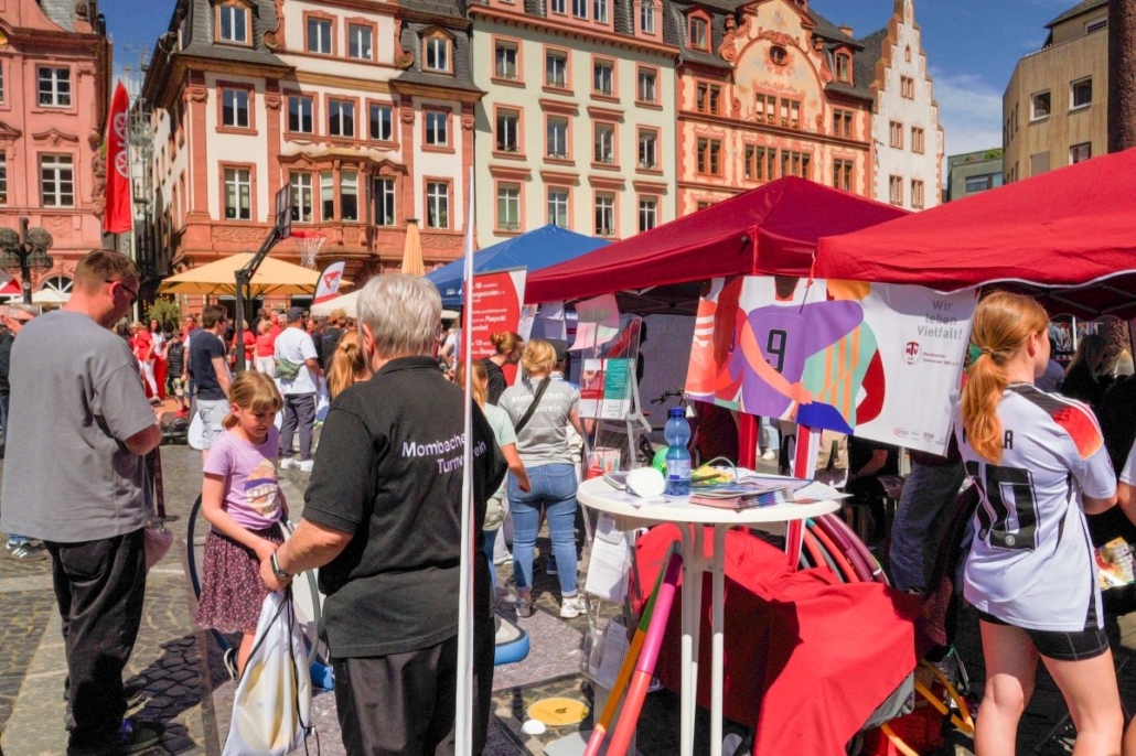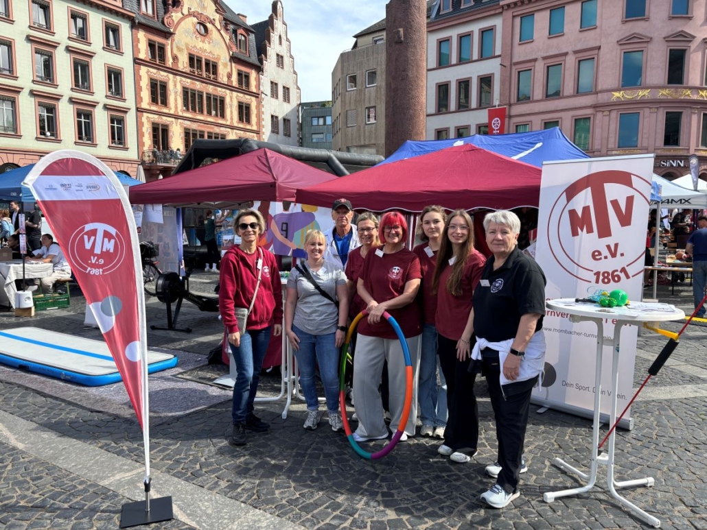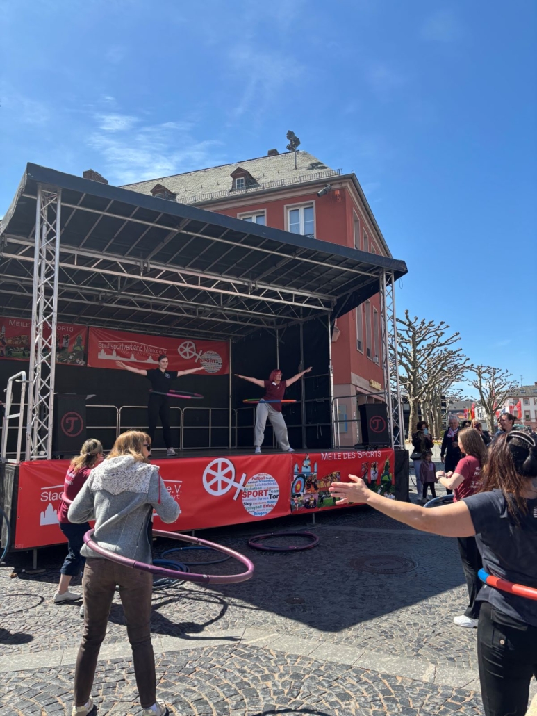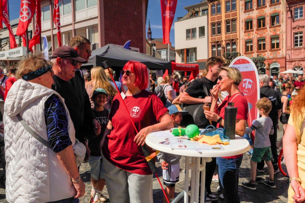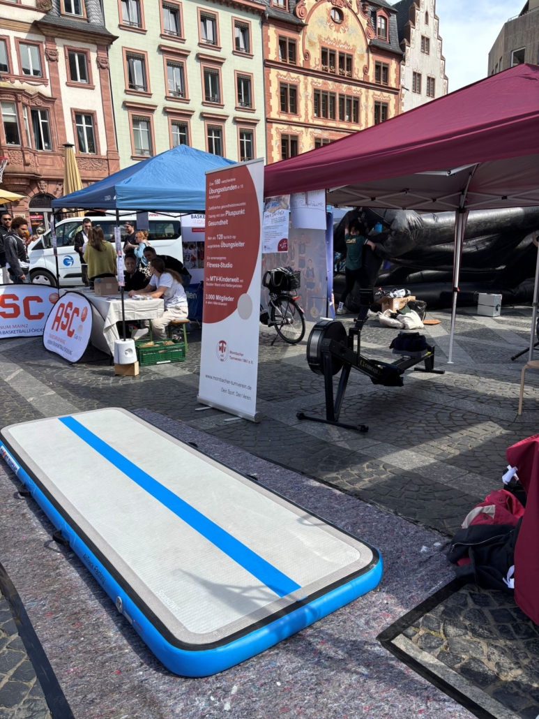 Am Sonntag den 26.04.2026 wurde der Mainzer Marktplatz zur großen Bewegungsfläche: Die „Meile des Sports“ lockte bei strahlendem Sonnenschein zahlreiche Besucher*innen und Familien an, die sich zwischen Ständen, Mitmachaktionen und Showprogrammen tummelten. Zahlreiche Sportvereine stellten ihre Angebote vor – mittendrin unser Verein, der in diesem Jahr ganz auf „Mitmachen statt nur Zuschauen“ setzte.