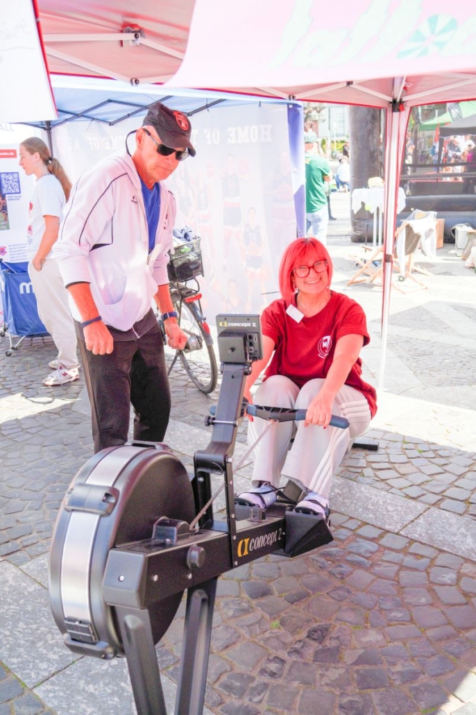 Ein weiteres Highlight war der Glitzertattoostand unseres Jugendausschusses: Hier reihte sich den ganzen Tag über ein Kind nach dem anderen ein, sodass Pailletten und Glitzer bald überall zu sehen waren. Parallel dazu wurden an den Ruderergometern fleißig Kilometer gesammelt.